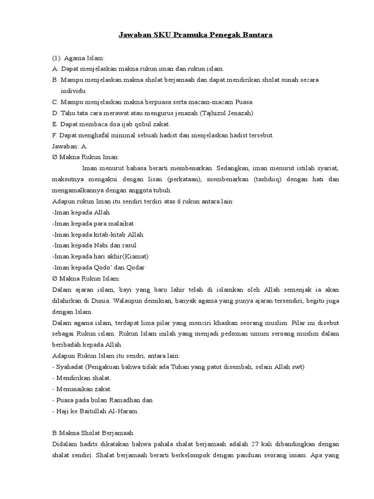 Untuk membaca isi pasal 26 sampai 31 aggaran dasar gerakan pramuka terbaru hasil muna. Adapun bentuk tku penegak adalah sebagai berikut: Dapat menjelaskan sejarah, arti dan tatacara penggunaan dan kiasan sang merah putih. A) dapat menjelaskan makna rukun iman dan rukun islam di muka pasukan penggalang atau satuan penegak: Art gerakan pramuka kepada ambalan.