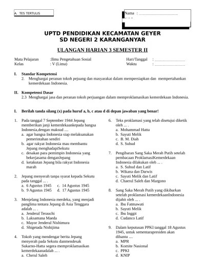 Soal pre test skd perjuangan mempertahankan kemerdekaan indonesia. Materi soal tentang perjuangan mempertahankan kemerdekaan indonesia (bab 3), dengan sub pokok bahasan, soal tentang kondisi indonesia di . Soekarno pada 17 agustus 1945. Usaha perjuangan mempertahankan bandung kemerdekaan indonesia Latihan soal kelas 9 ips d.